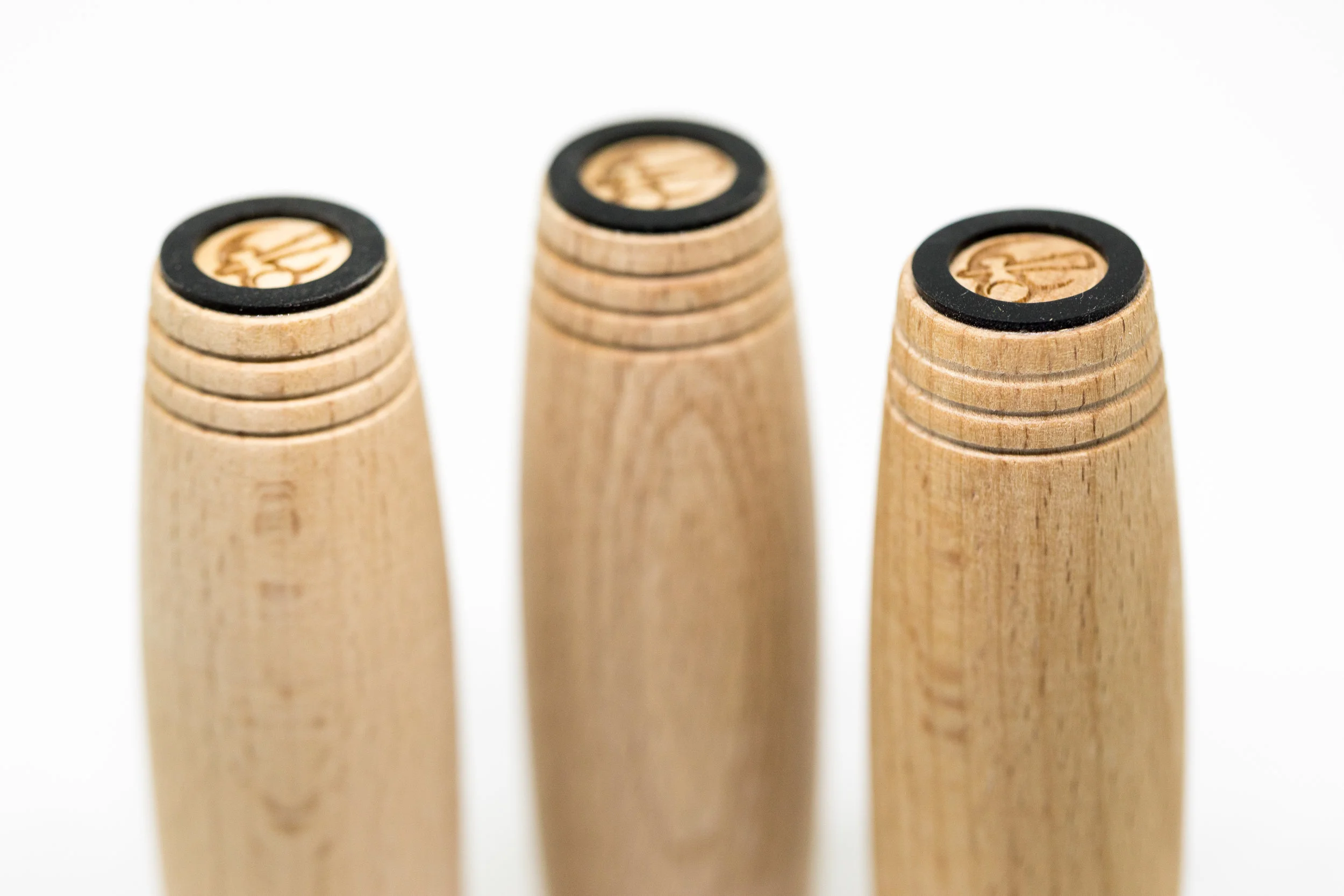Our premium Paduak Kururins are almost out of stock. For the next batch of these highly addictive little toys, we created a more budget-friendly Kururin out of European Beech wood. This Kururin does not feature the mid-section tracking lines but does feature the LunaTac logo engraved on both sides. The feature we're most excited about is our new pads! They are hollow, meaning they have a hole in the middle. This not only allows for you to see the engraving underneath, but it also provides the perfect shape to create grip when doing Kururin tricks.